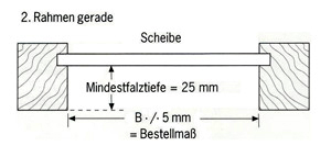 Bestellbreite (gerader Rahmen) = Lichtes Glasmaß abzgl. 5 mm